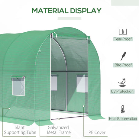 Polytunnel Greenhouse 4 x 3(m) with Windows and Doors - Green