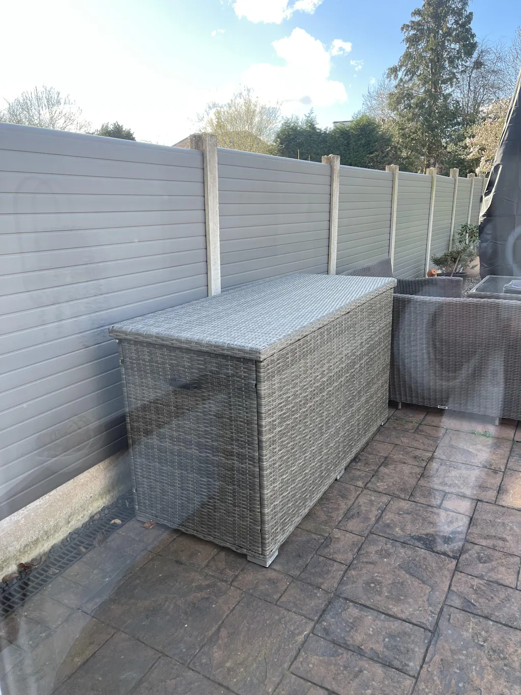 Keep your garden neat and clutter-free with this large wicker outdoor storage box. Designed with a spacious interior and weather-resistant construction, it's perfect for storing cushions, garden tools, pool accessories, and more. With its sleek modern look and durable build, it blends seamlessly into any patio, garden, or deck.