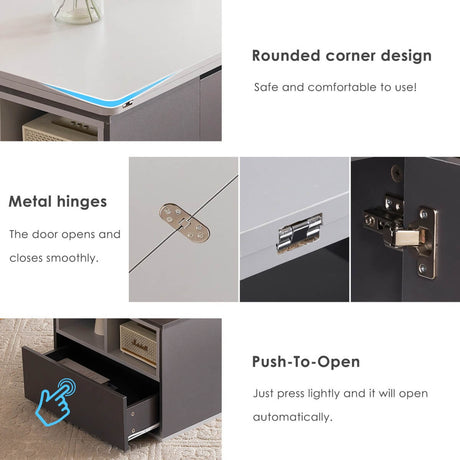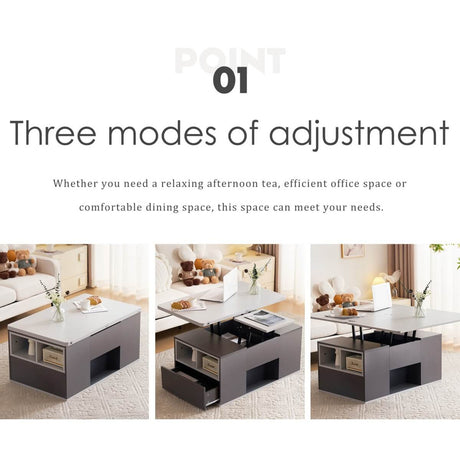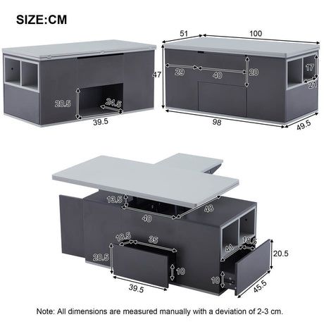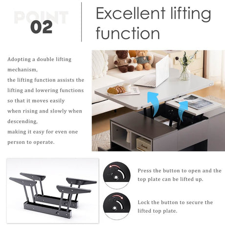 Lift-Top Coffee Table with Storage - Grey Coffee Table with 2 Drawers