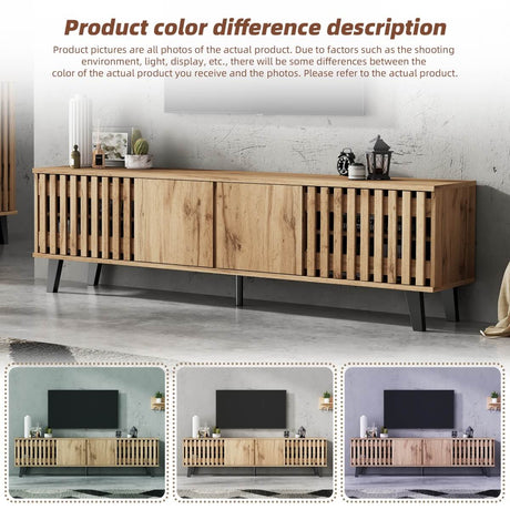 Modern TV Cabinet with LED Lights - Large Storage Media Console, Wood Grain Finish