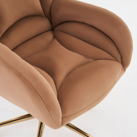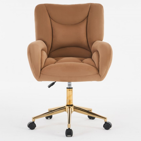 Full KD Adjustable Height Swivel Home Office Chair, Brown Velvet Fabric with Gold Legs