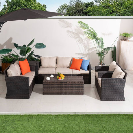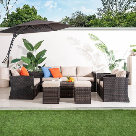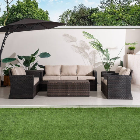 7 Seater Rattan Garden Sofa Set – Outdoor Lounge Set with Storage Coffee Table and Footstools
