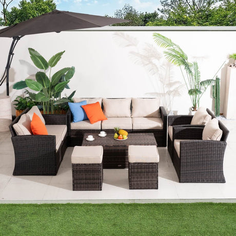 8-Seater Outdoor Rattan Conversation Set with Storage Box - PAS-1403B