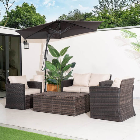 Rattan Garden Furniture Set, 4 Pieces - Grey