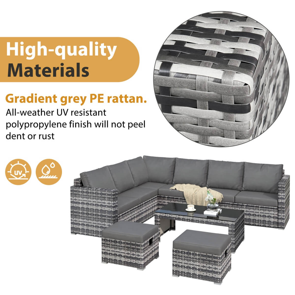 - Comfortable Cushions: Soft, ergonomic cushions enhance comfort, allowing everyone to sit back and relax. Spacious seating and ergonomic corner design create a cosy and inviting outdoor experience.