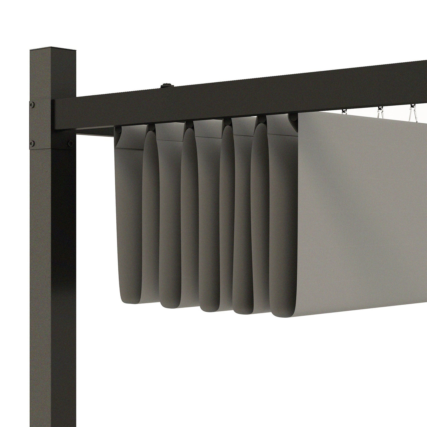 Metal Pergola with Retractable Roof, Magnetic Fixture, Sun Shade Canopy, Grey