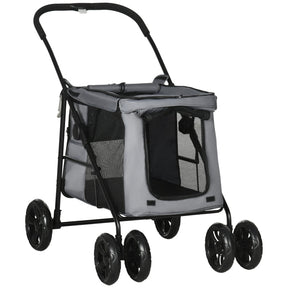 Foldable Pet Stroller, One Click Pushchair Travel Carriage with EVA Wheels, Grey