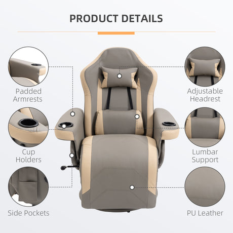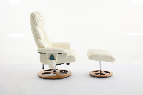Swivel Recliner Chair with Footstool, High Back PU Leather, Cream White