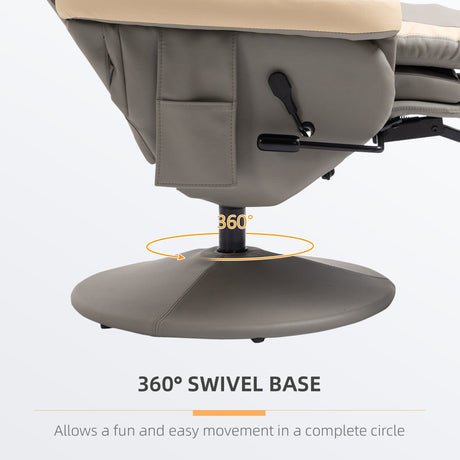 Swivel Recliner Chair and Footstool with High Back, PU Leather, Grey
