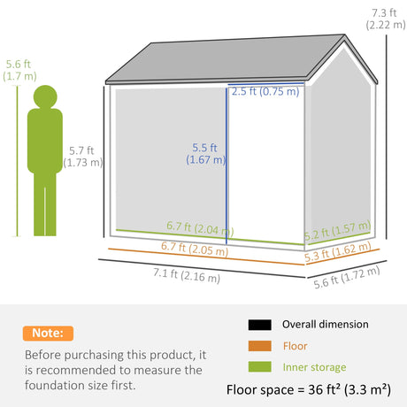 Aluminium Frame and Plastic Wall Shed, 7.9ft x 6.2ft with Foundation - Light Grey