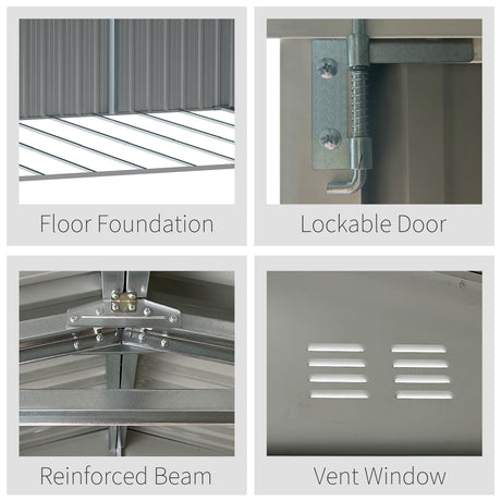 8 x 6 ft Galvanised Garden Shed with Double Doors and Air Vents, Grey