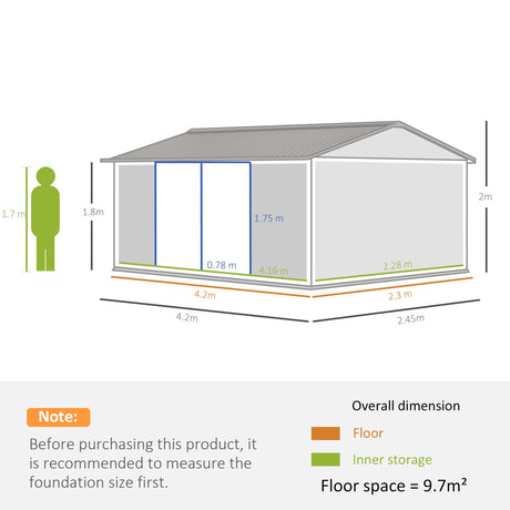 Outdoor Garden Metal Storage Shed 14 x 8ft with Lockable Door, Grey