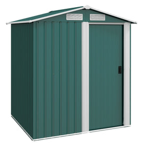 Garden Metal Tool Storage Shed with Sliding Door, Sloped Roof and Floor Foundation, Green