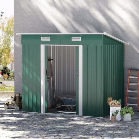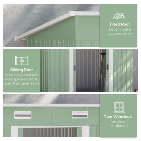 7 x 4ft Outdoor Garden Metal Storage Shed, Tool Storage Box, Light Green