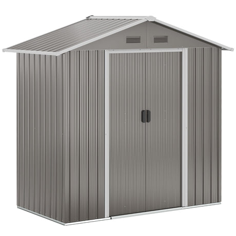 Metal Garden Storage Shed 6.5ft x 3.5ft Outdoor Tool Storage Double Sliding Doors 4 Vents, Grey