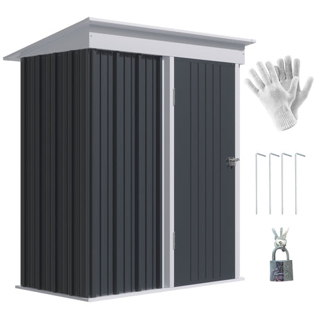 Metal Garden Storage Shed 5ft x 3ft, Outdoor Tool Shed Sloped Roof Lockable Door, Grey
