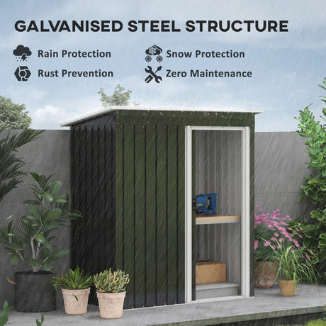 Garden Storage Shed with Sliding Door and Sloped Roof, Green