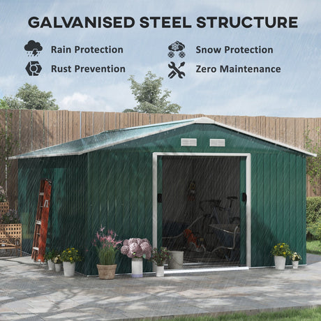 Steel Sliding Door Storage Shed 12.5 x 11.1ft - Green