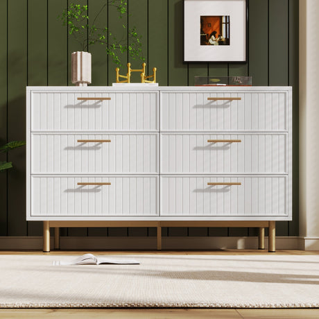 Bedroom Chest of Drawers, 6-Drawer Dresser Tall Storage, White
