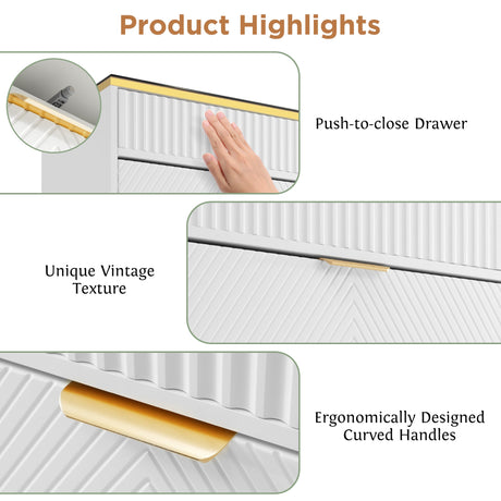 Sideboard Cabinet Dresser with 6 Drawers, Amber Glass, White