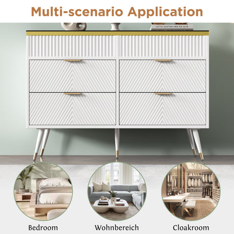 Sideboard Cabinet for Living Room, Chest of 6 Drawers, White, 40D x 120W x 75H CM