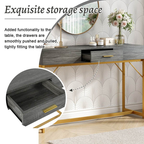 Grey & Gold Console Table with Drawer – Modern Luxury Hallway Table