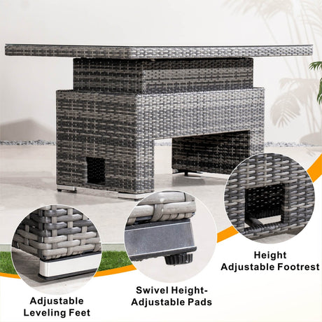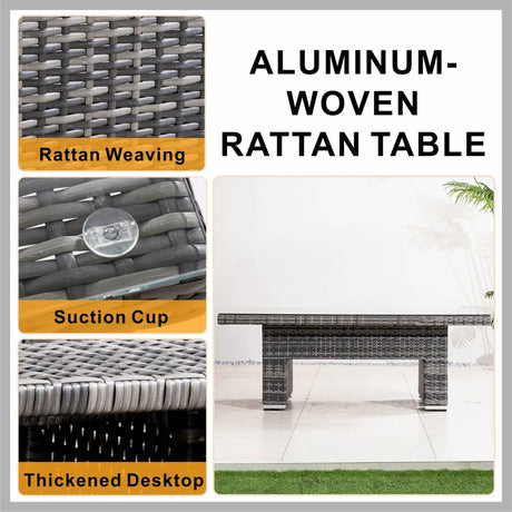 8-Piece PE Rattan Aluminum Corner Conversation Sofa Set with Adjustable Lift Table PAS-16002B-SET