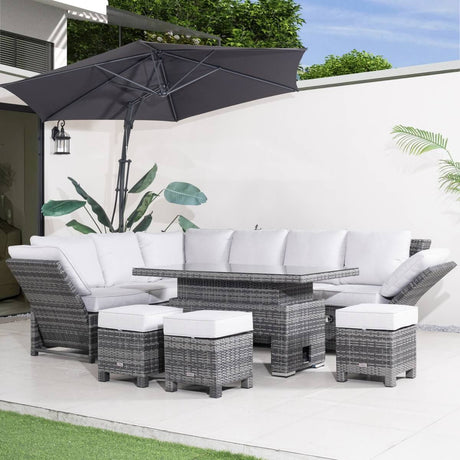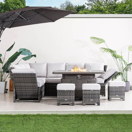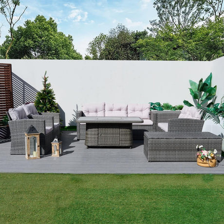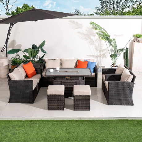 9-Seater Outdoor Corner Sofa Set with Lift-Top Fire Pit Table