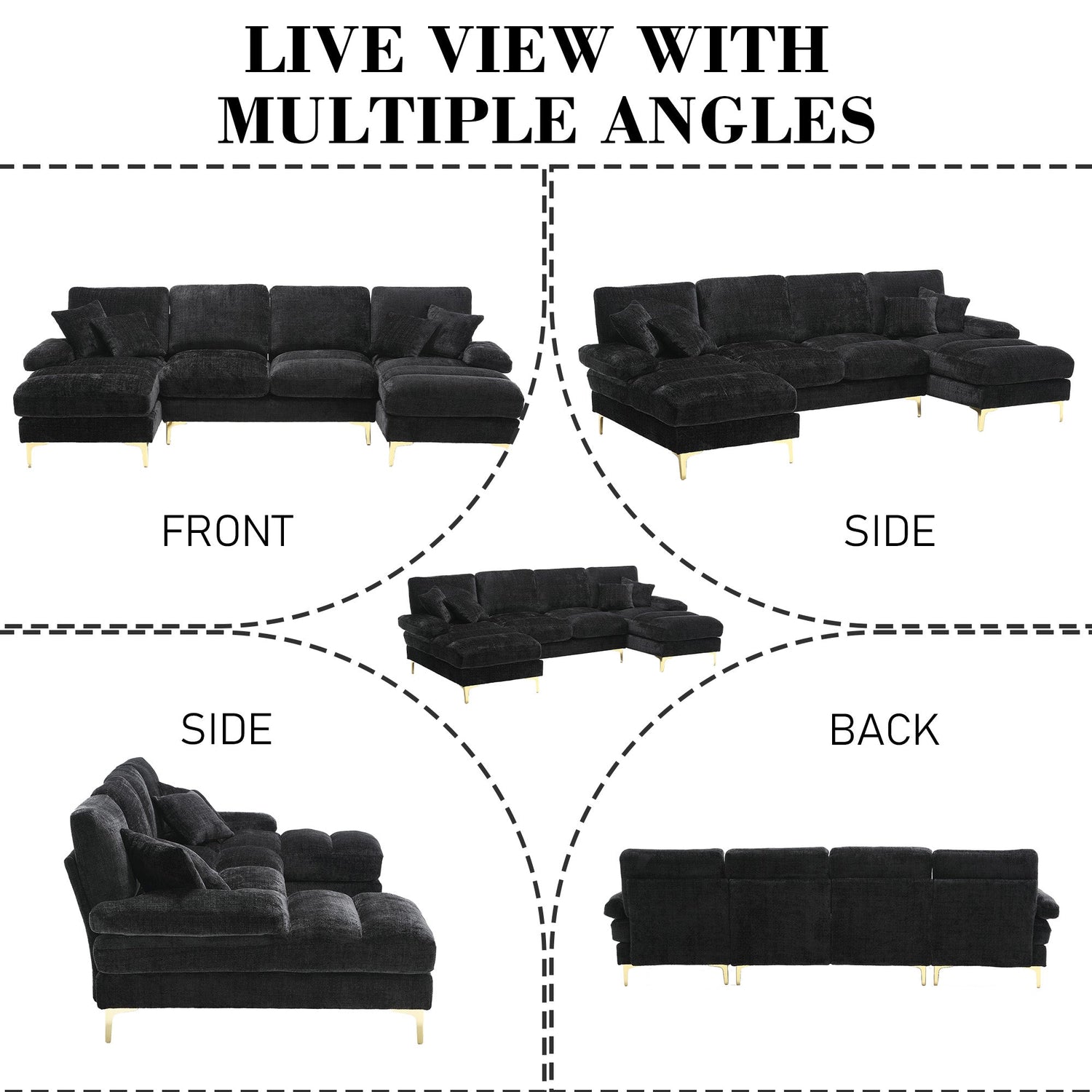 Sectional Couches GOMYWAY Modular U-Shaped with Double Chaise for Living Room Chenille Fabric is backordered and will ship as soon as it is back in stock.