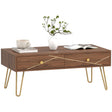 Modern luxury: Woodgrain panels with golden lines, knobs and hairpin legs, the storage coffee table enhances your room with a touch of luxurious elegance.