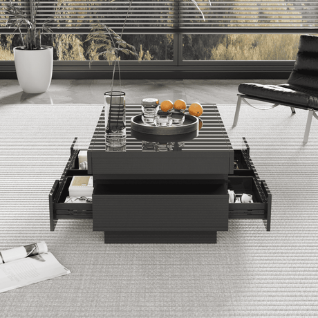Coffee Table, High-Gloss Black with Push-Pull Storage
