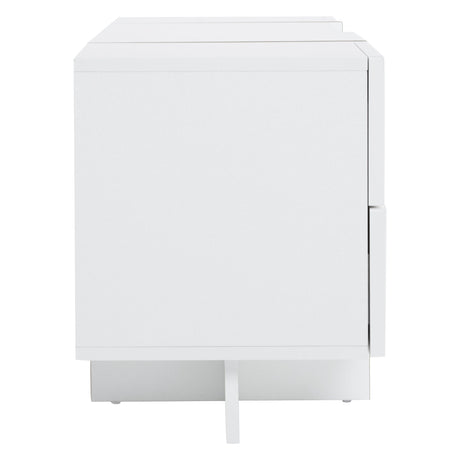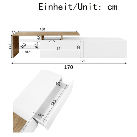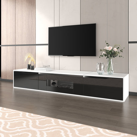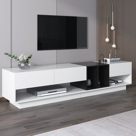 TV Cabinet, Low Panel with Colorblocked Legs, Doors & Drawers, High-Gloss White and Black
