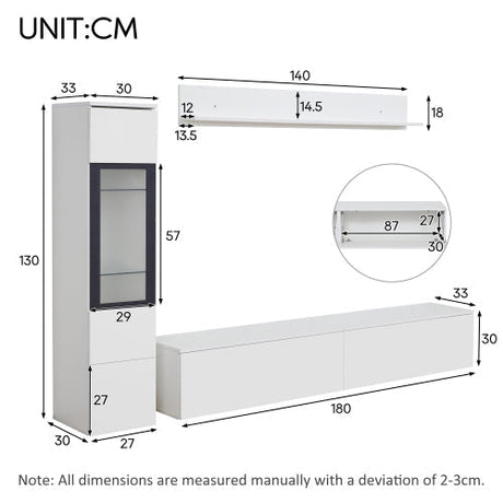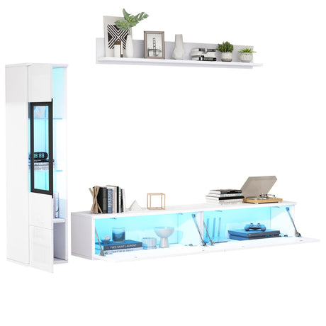 Set of 3 TV Wall Unit, LED TV Stand & Display Cabinet, High Gloss White