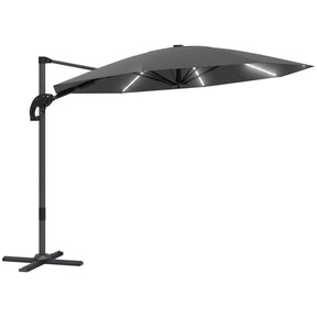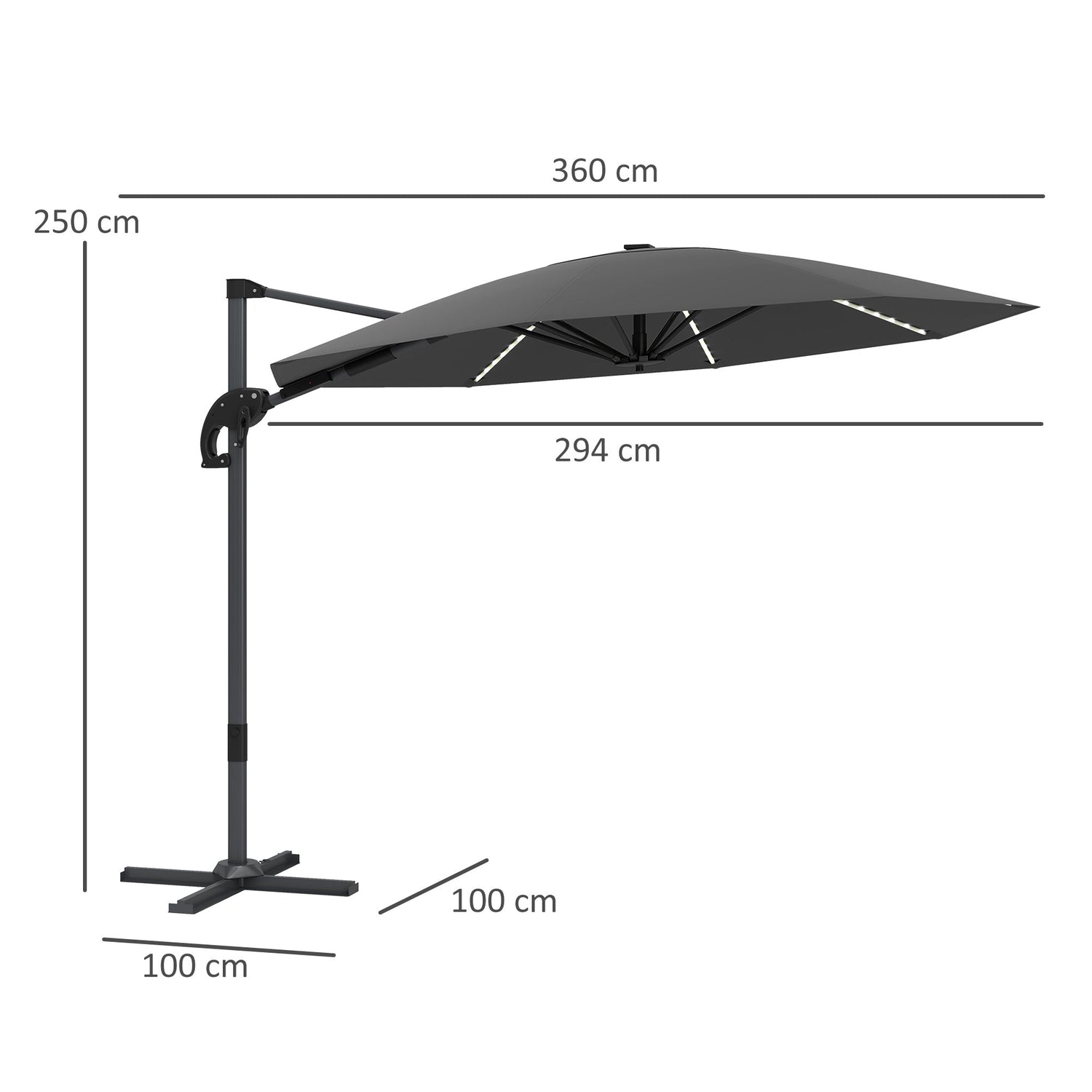 Cantilever Garden Parasol, Solar Powered Lights, Crank Handle, Cross Base, UPF 50+, 360?? Rotation, Dark Grey
