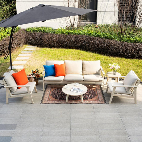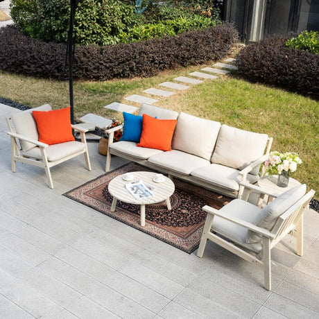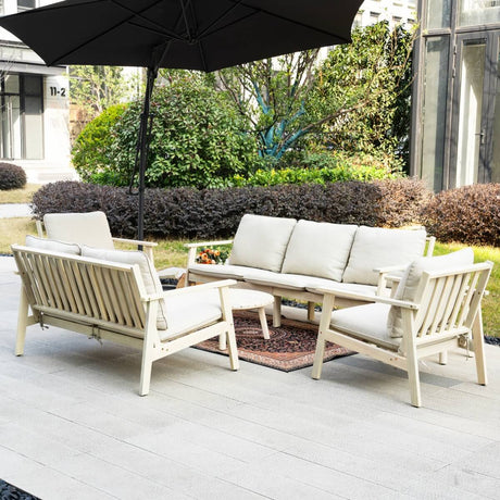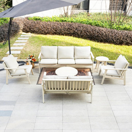 5-Seater Wood Patio Conversation Set with Footstool