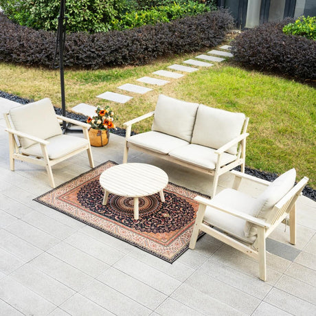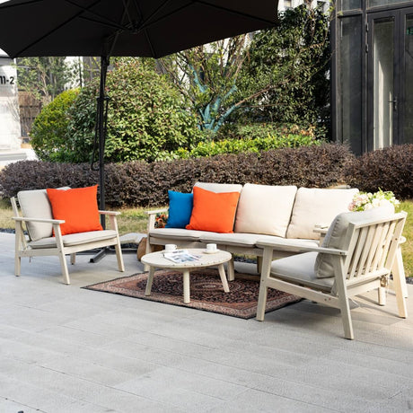 4-Seater Wooden Outdoor Sofa Set – Garden Lounge with Round Coffee Table