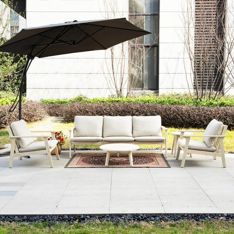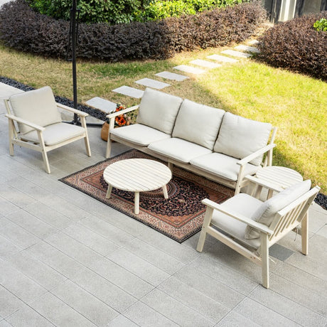 5-Seater Wooden Outdoor Furniture Set – Garden Sofa with Round Coffee Table and Side Table