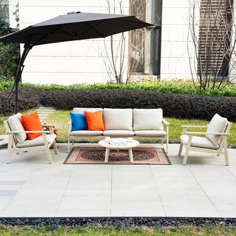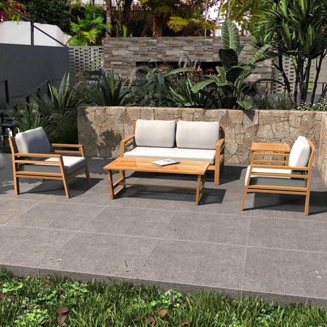4-Seater Acacia Wood Outdoor Sofa Set – Garden Lounge with Coffee Table and Side Table