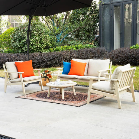 4-Seater Acacia Wood Outdoor Sofa Set – Solid Wood Garden Lounge with Coffee Table