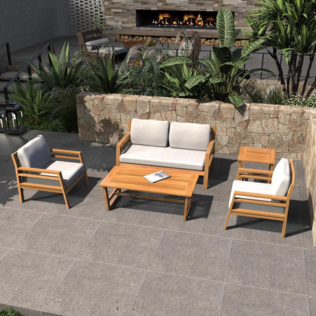 5-Seater Acacia Wood Outdoor Sofa Set – Solid Wood Garden Lounge with Coffee Table and Side Table