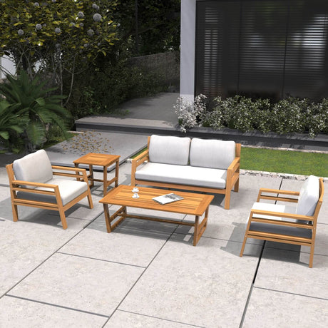 5-Seater Acacia Wood Outdoor Sofa Set – Solid Wood Garden Lounge with Coffee Table
